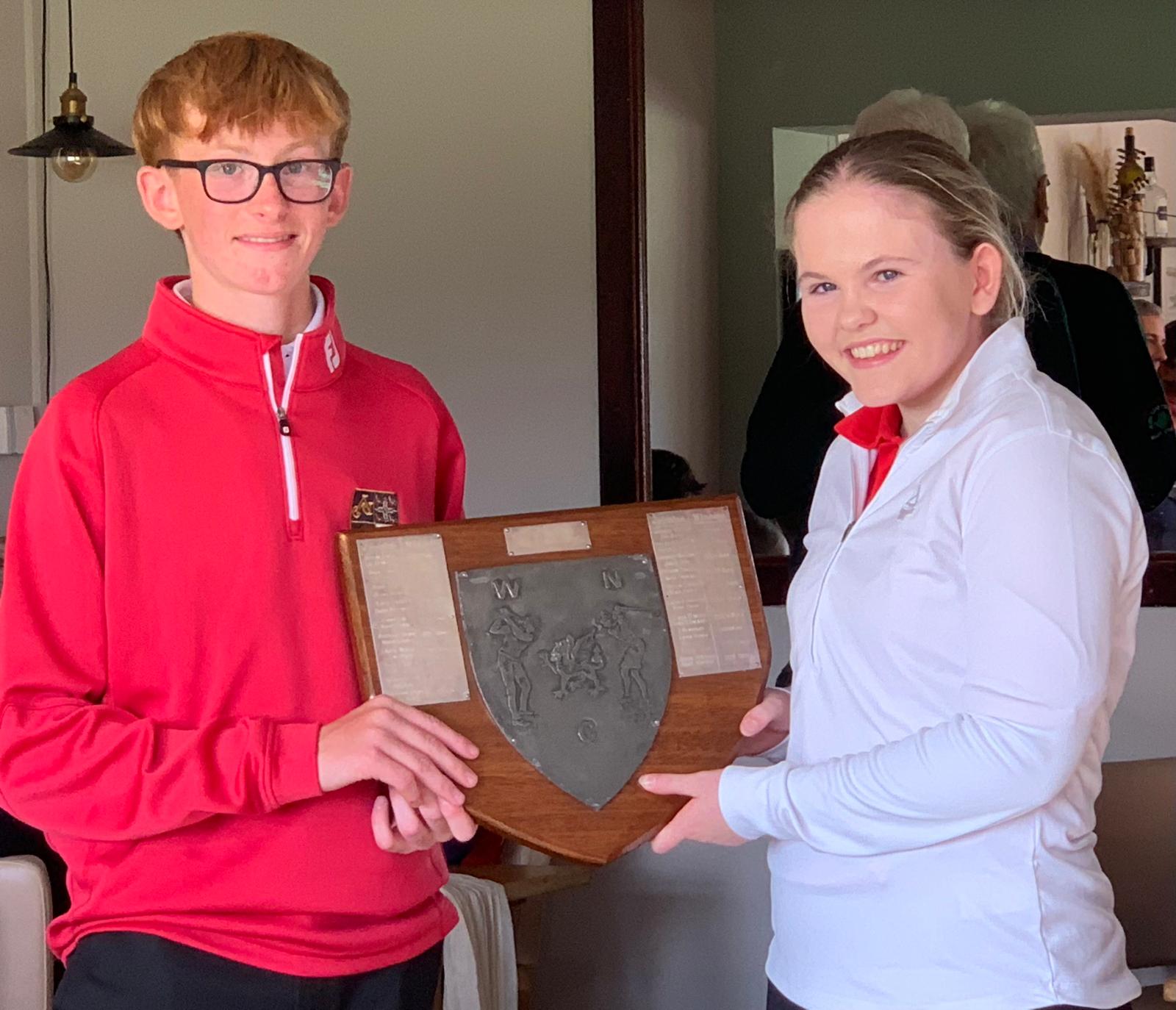 Ifan Boys Captain 2025 & Olivia Girls Captain 2025 sharing the North Wales Boys v WNC Girls Shield.